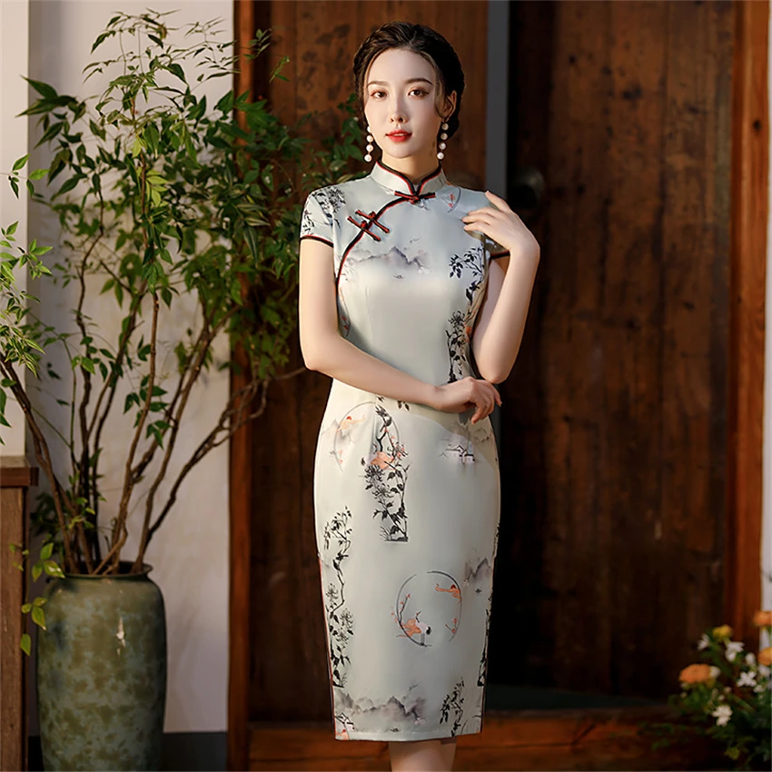 2022 Neue Qipao Moderne Retro Elegante Chinesischen Stil Verbessert Kleid Stickerei Blume Dame Bankett Rock Sexy Seite Schlitzte Cheongsam Cheongsam Aliexpress