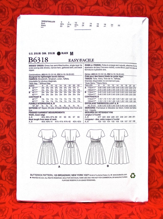 Butterick Easy Sewing Pattern B6318 Dress Short Sleeve Etsy